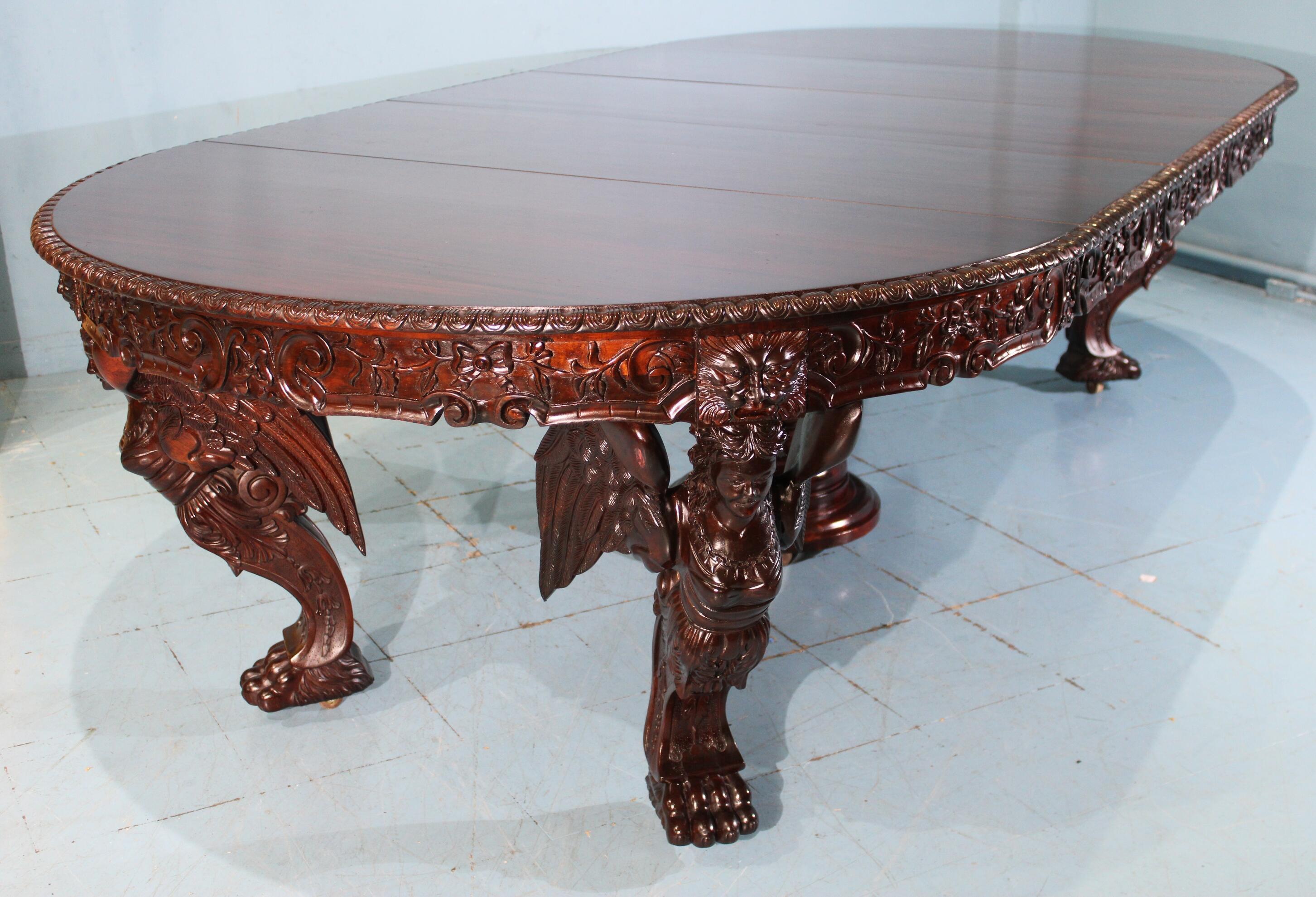 Period furniture will be highlighted by a magnificent, heavily carved R. J. Horner dining table with carved band and figural angels for support and three 20-inch leaves (est. $7,000-$10,000); companion to that a heavily carved set of 12 dining chairs, two of them arm chairs, in excellent condition with paisley upholstery (est. $4,000-$8,000); and a pierce carved Meeks side chair in the Henry Ford pattern with laminated black and yellow velvet upholstery (est. $400-$800).