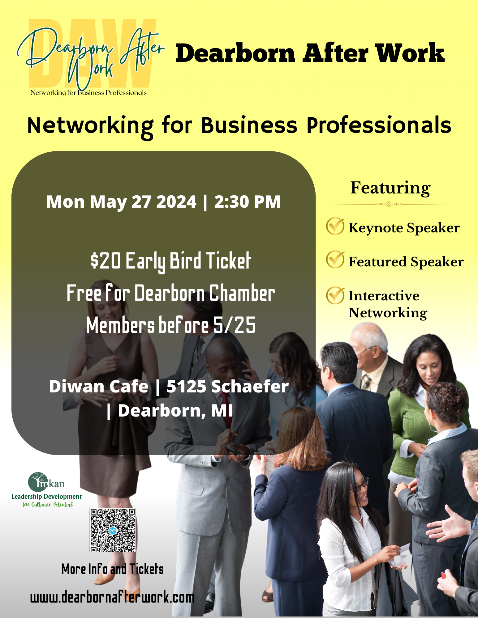 Tickets are priced at $20—a worthwhile investment for an evening of networking and professional development. Secure your spot by visiting www.DearbornAfterWork.com. Spaces are limited, so don’t delay!
