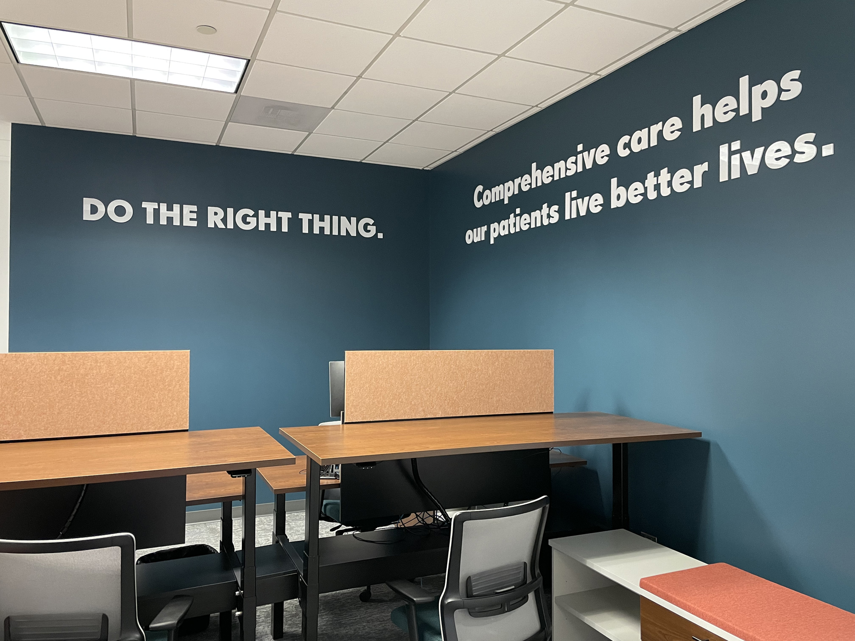 Healthcare Art Consulting & Quality Art House's increased focus on graphic walls reflects their dedication to providing solutions that blend branding, aesthetics, and functionality. From Mission, Vision, and Values walls to large-scale murals, these installations enhance healthcare and corporate environments, creating cohesive and engaging spaces.