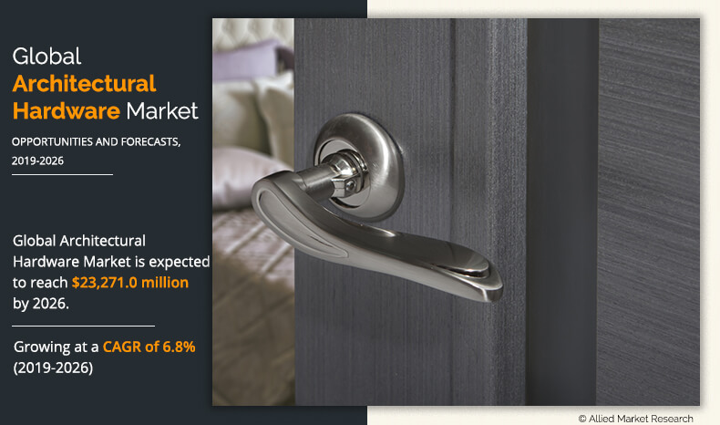 WILMINGTON, DELAWARE, UNITED STATES, May 3, 2024 /EINPresswire.com/ -- The architectural hardware are a type of hardware which includes doors, windows, furniture, and shower. Steel is most commonly used in the production of architectural hardware. Other metals in which washers are available include copper, brass, aluminum, titanium, bronze, zinc, and iron. According to the report, the global architectural hardware industry generated $15.96 billion in 2018, and is expected to reach $23.27 billion by 2026, registering a CAGR of 6.8% from 2019 to 2026.