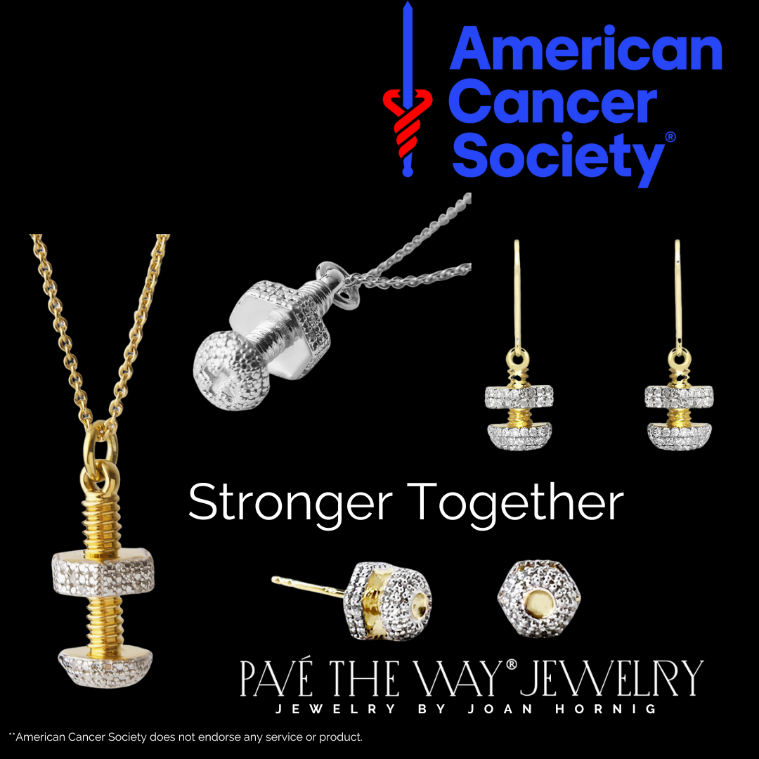"For over two decades, Pavé The Way® Jewelry and its parent line, Philanthropy Is Beautiful® Jewelry, have donated 100% of profit to the charity designated by the customer. But this partnership initiative will take all undesignated choices by purchasers and funnel them to the American Cancer Society. Since Pavé The Way® Jewelry is about storytelling and creating meaningful impact through sales of fine jewelry, I am particularly excited to launch this month with our Empowerment Tools that message optimism and strength," comments Joan Hornig, Founder and Designer of the line. "Each month we will highlight a different jewelry piece to remind others that we can all share in supporting the efforts of the American Cancer Society. We will also provide a link to that piece and tag American Cancer Society on all social media posts to help educate those affected by cancer and to help direct those who want to get involved with the American Cancer Society's non-profit," continues Hornig.