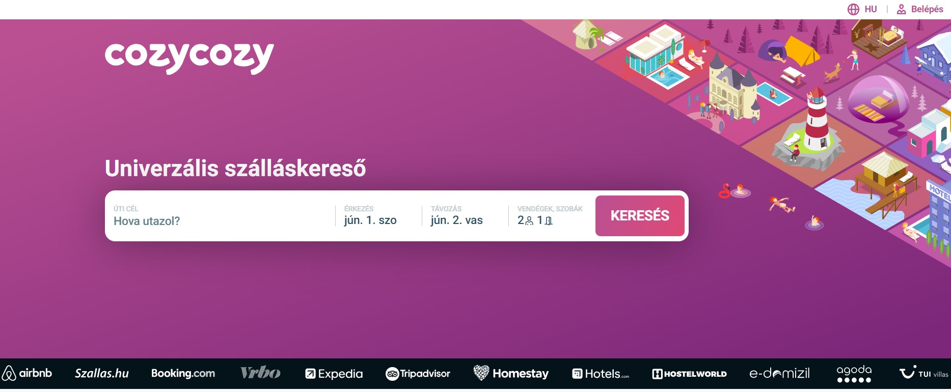 A cozycozy elfogulatlan, nem részrehajló egy foglalási oldallal szemben sem, így aki használja, biztos lehet abban, hogy a számára legideálisabb szállást fogja megtalálni az oldalon. A keresőmotor igényeink szerint a legjobb áron elérhető és legváltozatosabb szállásokat listázza: legyen szó hotelszobáról, kiadó nyaralóról, apartmanról vagy hostelről, egyetlen kereséssel bármelyiket megtalálhatjuk.