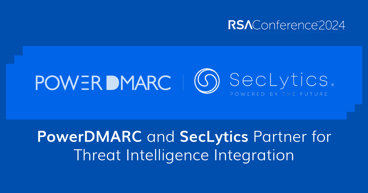 SAN FRANCISCO, CALIFORNIA, UNITED STATES, May 7, 2024 /EINPresswire.com/ -- PowerDMARC, a leading domain security and email authentication platform, announced its partnership at RSA Conference 2024 in San Francisco, CA with SecLytics, the pioneer in predictive threat intelligence powered by its patented, AI-driven behavioral profiling. This collaboration will empower organizations with a powerful combined solution for comprehensive email security, advanced threat intelligence insights, and protection.PowerDMARC's industry-leading platform safeguards organizations against email spoofing, impersonation, and unauthorized use by leveraging DMARC, SPF, DKIM, BIMI, MTA-STS, and TLS-RPT protocols.