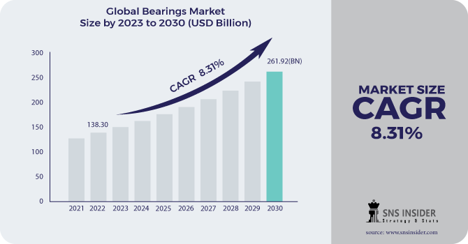 TEXAS, AUSTIN, UNITED STATES, May 8, 2024 /EINPresswire.com/ -- The Bearings Market size was valued at USD 119.86 Bn in 2023 and is expected to reach USD 248.5 Bn by 2031 and grow at a CAGR of 9.54 % over the forecast period 2024-2031.The global bearings market is witnessing a steady surge driven by industrial automation, rising automotive production, and the expansion of the aerospace and defense sectors. Bearings serve as critical components in various machinery and equipment, facilitating smooth rotational motion and reducing friction. This press release provides insights into the market dynamics, scope, analysis, drivers, opportunities, and challenges shaping the bearings market landscape.