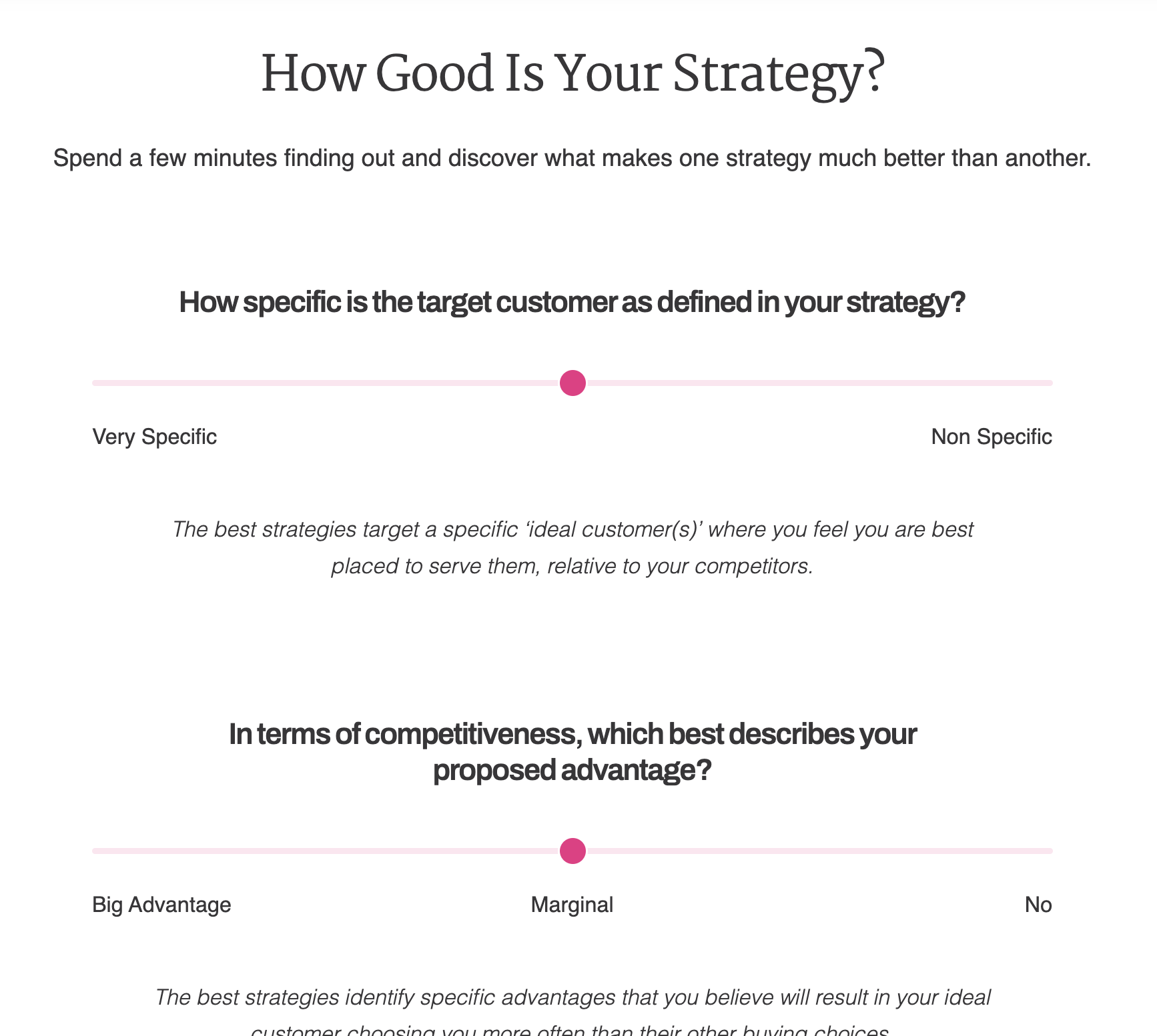 The assessment can be completed quickly and easily, and the immediate results provide clear and actionable insights to improve strategy and execution capabilities.