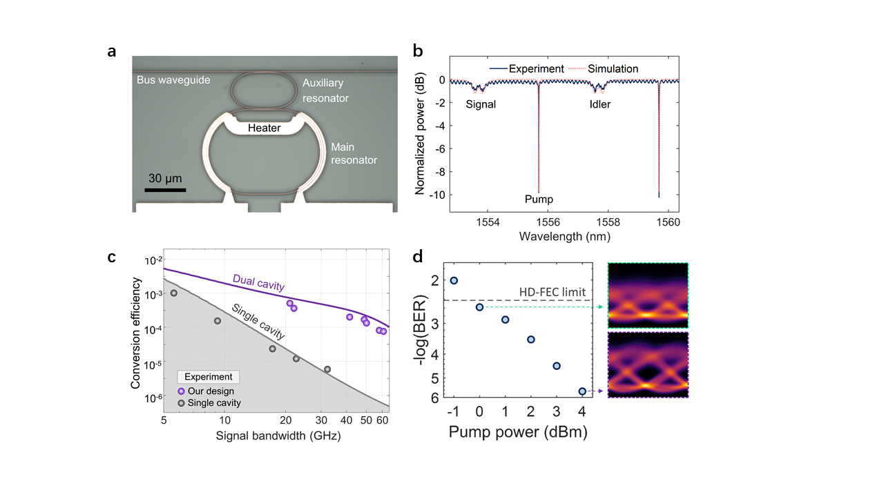 This innovation ultimately results in significantly reduced power consumption required for performing high-speed signal processing tasks. By combining the concept with an ultra-high nonlinear integration platform, i.e., AlGaAs-on-Insulator, researchers demonstrated NOSP operation (wavelength conversion) of a 38 GBaud on-off-keying signal with only 1mW pump power. This record-low pump power operation forecasts fully chip-scale nonlinear signal processing devices in the near future.