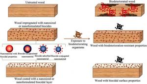 Finally, a future outlook is also provided. The life cycle assessment of the novel nanostructured wood products will provide a holistic understanding of the environmental implications and safety considerations associated with these products and their manufacturing and end-of-life processes. This endeavour paves the way for the efficient application of nanotechnology-based methods for industrial manufacturing and the widespread application of biodeterioration-resistant wood materials.
