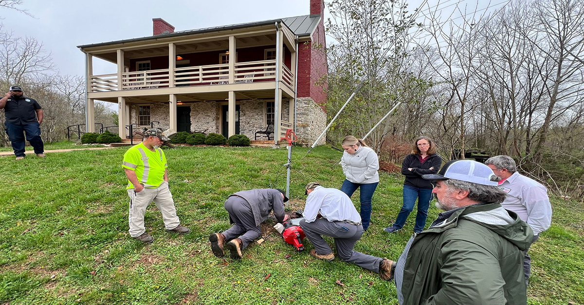 Members of the City of Lexington and County of Rockbridge Public Service Authority watch an Electro Scan SWORDFISH field demonstration.