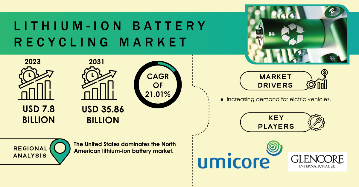 Lithium-Ion Battery Recycling Market to Reach USD 35.86 Billion with Highest CAGR of 21.01% by 2031