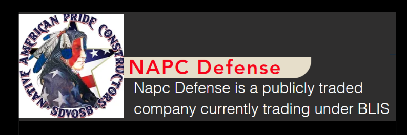 NAPC Defense, Inc. (OTC: BLIS) is a military products sales and production company, fully licensed in the United States, with exclusive rights to produce and sell Corner Shot USA Systems, in addition to brokering other defense products throughout the world all with US State Department approval. Additional smaller military platforms and related products are in development.