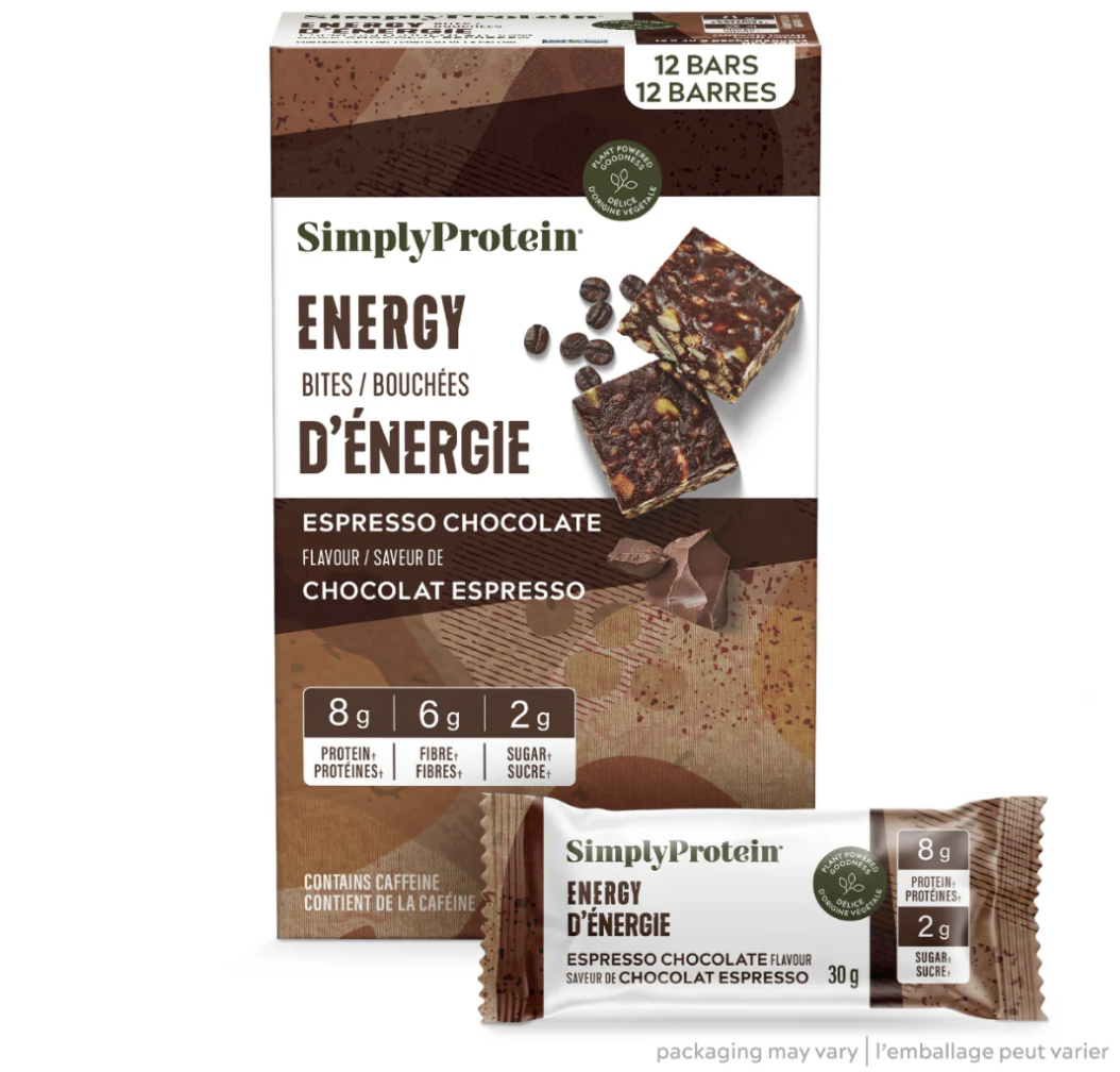 TORONTO, CANADA, May 13, 2024 /EINPresswire.com/ -- SimplyProtein®, the B Corp certified maker of nutritious, delicious protein snacks that are gluten-free, vegan and kosher, has announced the launch of its new Energy Bites, the brand’s first caffeinated protein snack. Available in two delicious flavours, the Energy Bites contain a mixture of chewy and crunchy gluten-free oats, almonds, pumpkin seeds, crisps, espresso and green tea extract to deliver a satisfying energy snack.Satisfying and rich-tasting with an added zip of caffeine, Energy Bites combine a boost of natural energy with a balance of flavour and nutrition in a convenient, bite-sized nibble. “We wanted to create a new snack that would expand our customers’ options when it comes to functionality,” said Kairen Wu, Senior Vice President Marketing + Innovation for Wellness Natural Inc., parent company of SimplyProtein. “A terrific addition to our portfolio, these bites combine an energy boost with in-demand flavours to pack a delicious punch.”