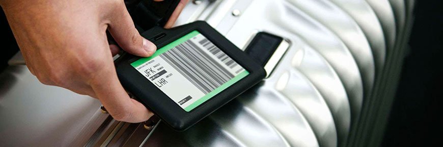 Wireless electronic bag tag harvests RF from airport RFID equipment to refresh the passenger's itinerary on E Ink's ePaper screen that can maintain an image perpetually, without a constant power source, until another wireless update is sent.