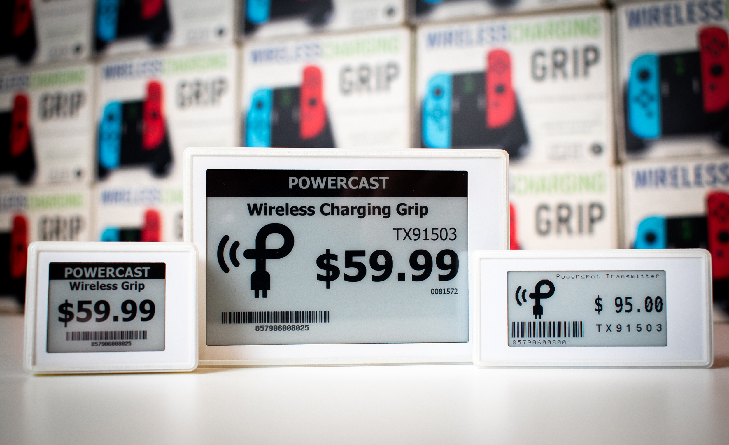 Several EPD applications were recently developed using partner E Ink’s bi-stable digital ePaper screen (https://go.eink.com/download-our-whitepaper-powercast-rf-technology) that can maintain an image perpetually, without a constant power source, until another over-the-air wireless update is sent. These EPDs include a wireless electronic bag tag which harvests RF from airport RFID equipment to refresh the passenger’s itinerary on the screen, and Powercast’s own batteryless ESL which enables over-the-air retail price updates.