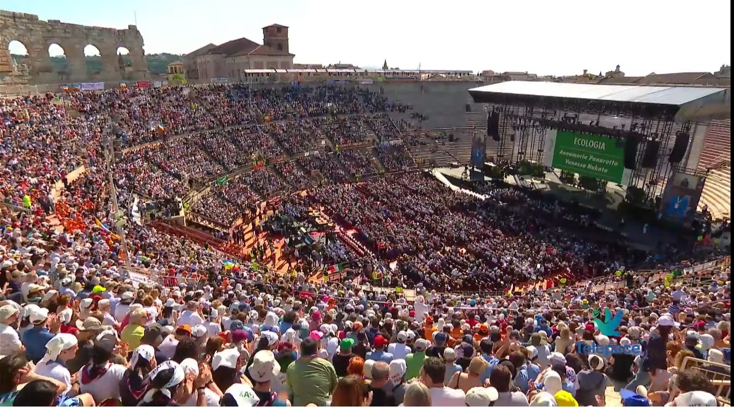 On Saturday, May 18, Pope Francis met with Israeli and Palestinian peace activists Maoz Inon and Aziz Abu Sarah. Aziz and Maoz– each of whom have lost family to the ongoing conflict– were invited by the Bishop of the Diocese of Verona to Arena di Pace or “The Arena of Peace”, an event that draws on a long history of promoting peace, dialogue and the role of civil society.
