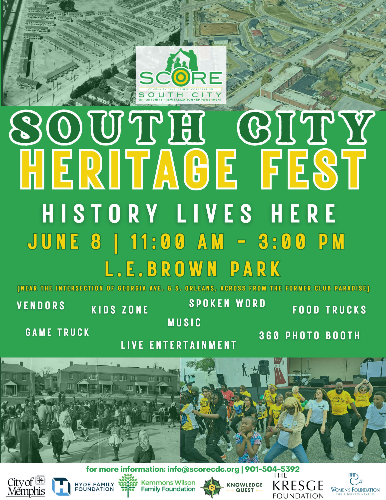 MEMPHIS, TN, UNITED STATES, May 22, 2024 /EINPresswire.com/ -- For the second year in a row SCORE CDC will celebrate the rich history of South City. South City Heritage Fest is Saturday, June 8th. The theme is “History Lives Here,” and the vibrant celebration will feature live entertainment, food, art, vendors, games, a kid’s zone, and more! This day of community will take place in L.E. Brown Park at 617 S. Orleans St. from 11 a.m. – 3 p.m.