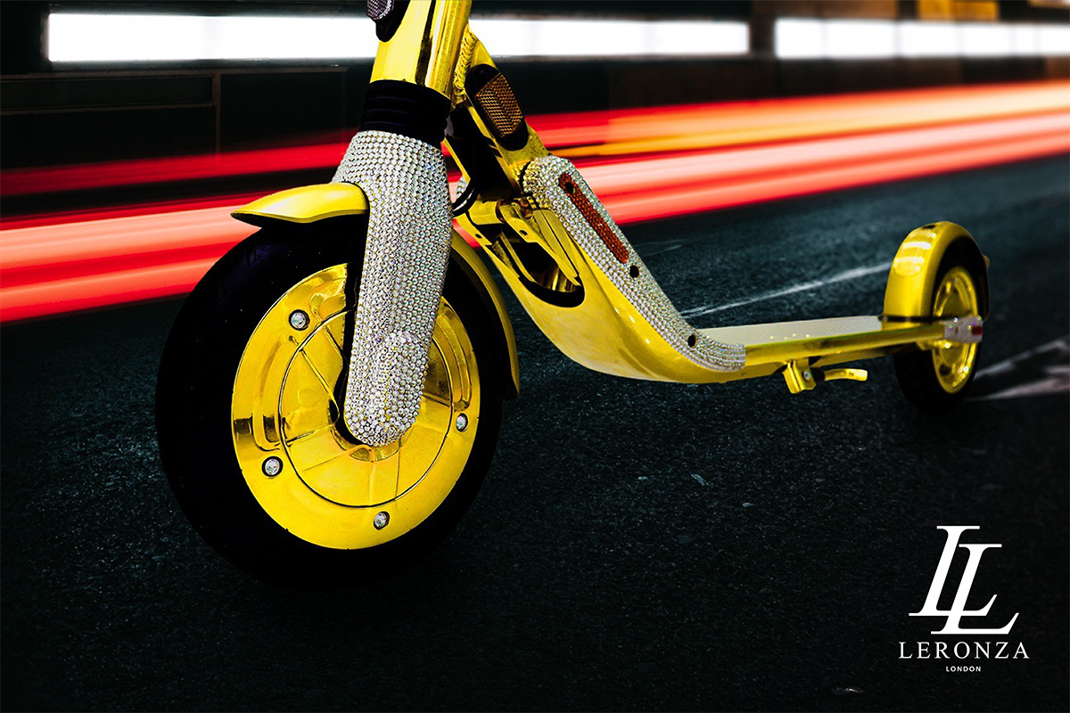 The 24K Gold Segway with Simulated Diamonds is now available for purchase exclusively from Leronza’s Flagship store in Dubai or their www.leronza.com. Visit for more information or to place an order.