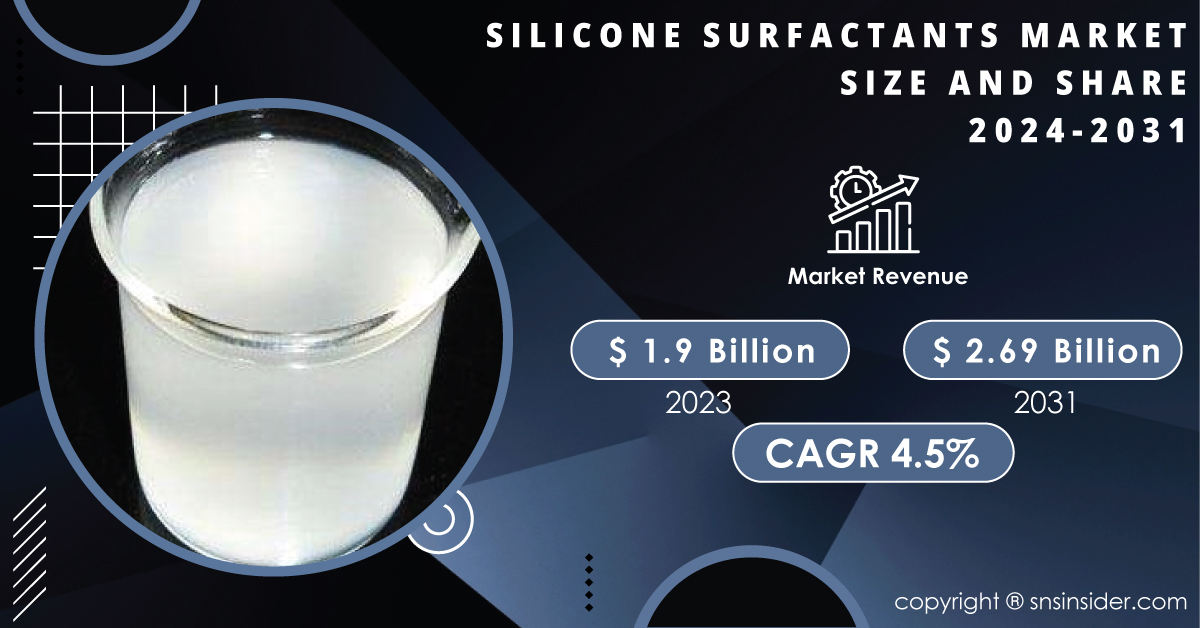 TEXES, AUSTIN, UNITED STATES, May 23, 2024 /EINPresswire.com/ -- According to a recent SNS Insider report, the silicone surfactants market size was valued at USD 1.9 billion in 2023 and is expected to reach USD 2.69 billion by 2031, exhibiting a steady CAGR of 4.5% during the forecast period of 2024-2031.Growing Demand Across Industries