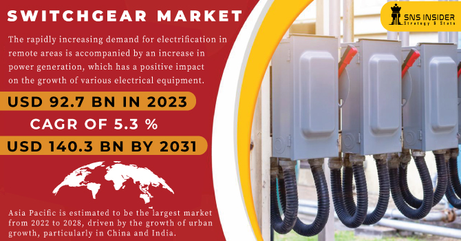 AUSTIN, TEXAS, UNITED STATES, May 23, 2024 /EINPresswire.com/ -- Switchgear Market Size & Growth OutlookThe SNS Insider report reveals that the Switchgear Market, valued at USD 92.7 billion in 2023, is projected to reach USD 140.3 billion by 2031, exhibiting a steady CAGR of 5.3% during the forecast period of 2024-2031.