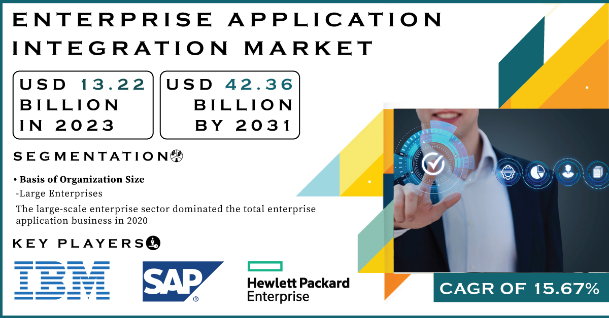 AUSTIN, TEXAS, UNITED STATES, May 23, 2024 /EINPresswire.com/ -- Market Scope and OverviewThe Enterprise Application Integration Market size stood at USD 13.22 billion in 2023, and is expected to grow with a projected valuation of USD 42.36 billion by 2031 and grow at a healthy Compound Annual Growth Rate (CAGR) of 15.67% over the forecast period 2024-2031.