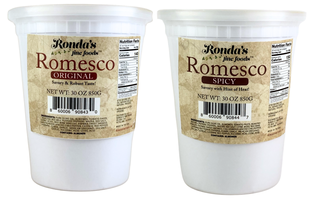 Ronda’s Fine Foods is focused on the highest standards, and we aim to exceed consumer expectations regarding taste, service, and experience. The brand currently has three shelf-stable products: Ronda’s sofi™ award-winning Original Romesco, Ronda’s Spicy Romesco, and Ronda’s Original Muhammara. These savory and robust dips/spreads/toppings/sauces are extremely versatile and enhance any culinary occasion.