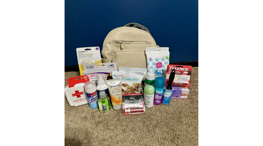The pack can include multiple compartments and pockets for storing and organizing items. There is no limit as to what types of items can be carried in the bag. Some examples may include compact and travel size dry shampoo, snack foods, additional clothing, hygiene products, and much more. The bag helps prevent caregivers from looking disheveled throughout the day by ensuring personal care and grooming items are kept easily accessible. The bag offers more space than traditional backpacks and purses while maintaining organization and easy access to items within the interior.