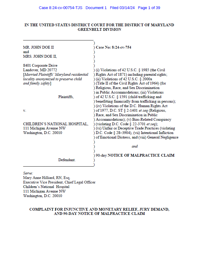 This case raises deep concerns about the potential misuse of federal funds from agencies such as the National Institute of Health, which provides over 60% of the hospital’s research funding. Children's National Hospital's Gender Development Program is alleged to be pushing a specific gender ideology rather than offering a balanced and ethical healthcare perspective. This is not merely about medical care but about advocating for ideologies that may not align with scientifically balanced care and parental choice.