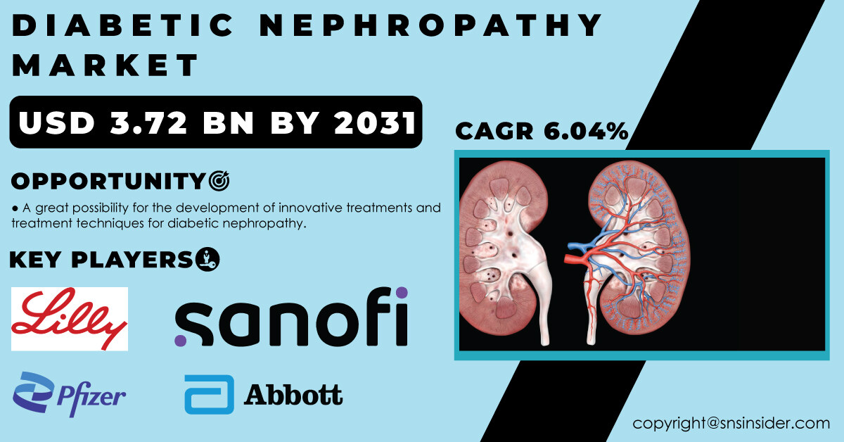 AUSTIN, TEXAS, UNITED STATES, May 28, 2024 /EINPresswire.com/ -- The global diabetic nephropathy market size was valued at USD 2.33 billion in 2023 and is expected to reach USD 3.72 billion by 2031, growing at a compound annual growth rate (CAGR) of 6.04% over the forecast period of 2024-2031, according to a new report by SNS Insider.Report Scope