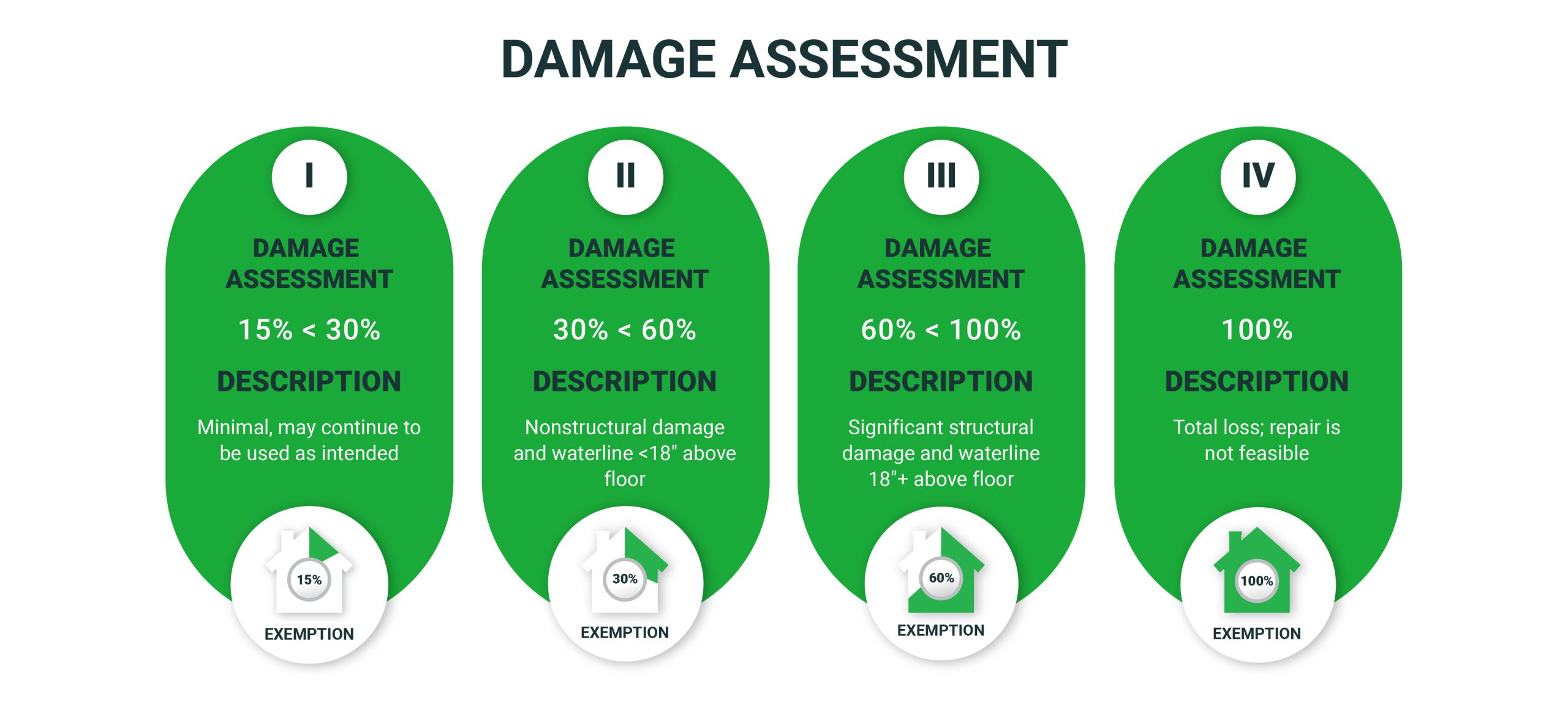 Once a homeowner applies for the exemption, according to Texas Tax Code 11.35, the chief appraiser of the county evaluates the qualification and then assigns a damage assessment of Level I, II, III, or IV, depending on the amount of damage.