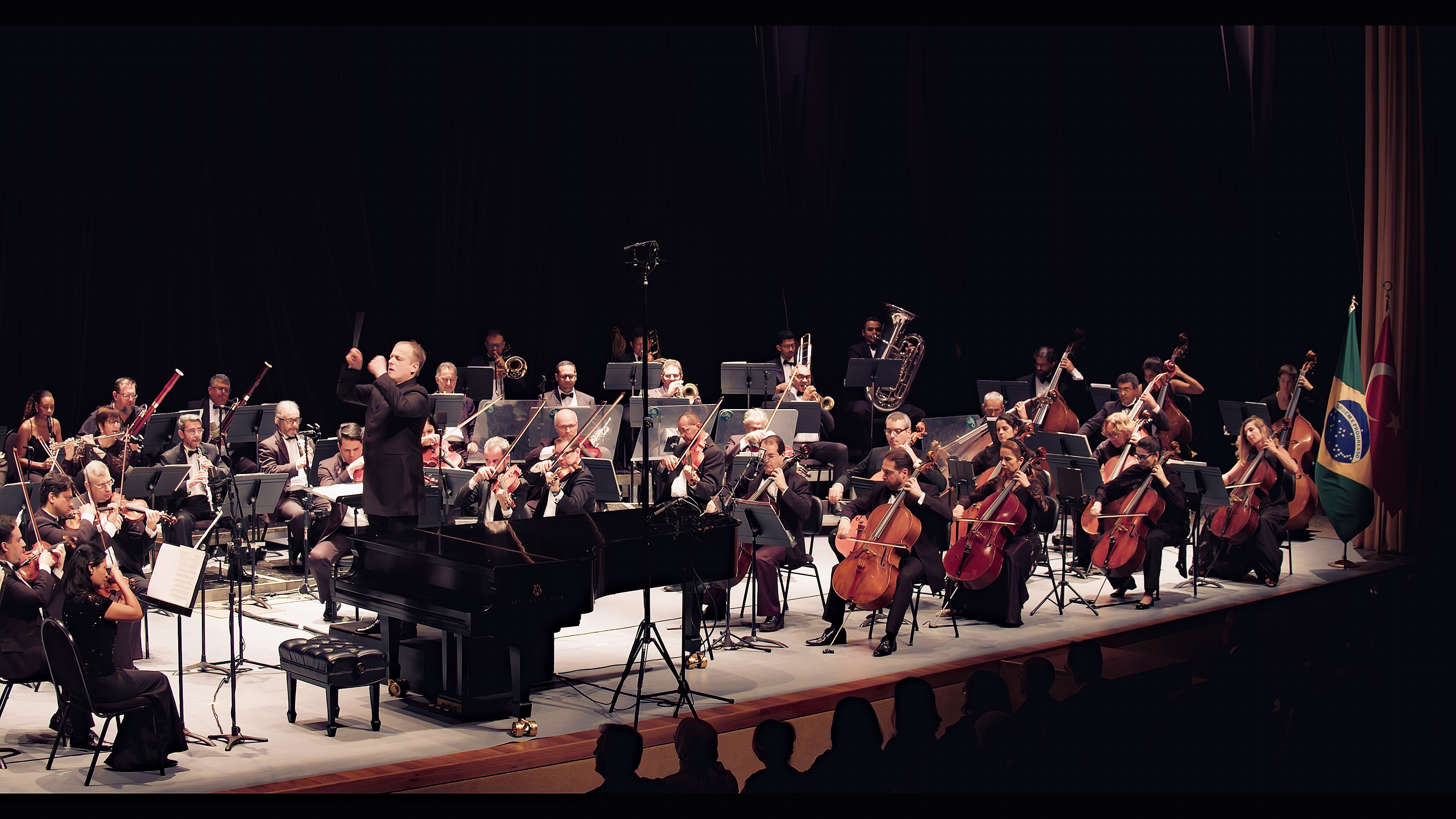 The symphony concert was entitled 'Concerto Turco' because the concert was held in partnership with the Turkish Embassy in Brasilia. At the beginning, the Turkish Ambassador, Mr. Akça, gave a greeting to the audience in the sold-out Teatro Poupex.