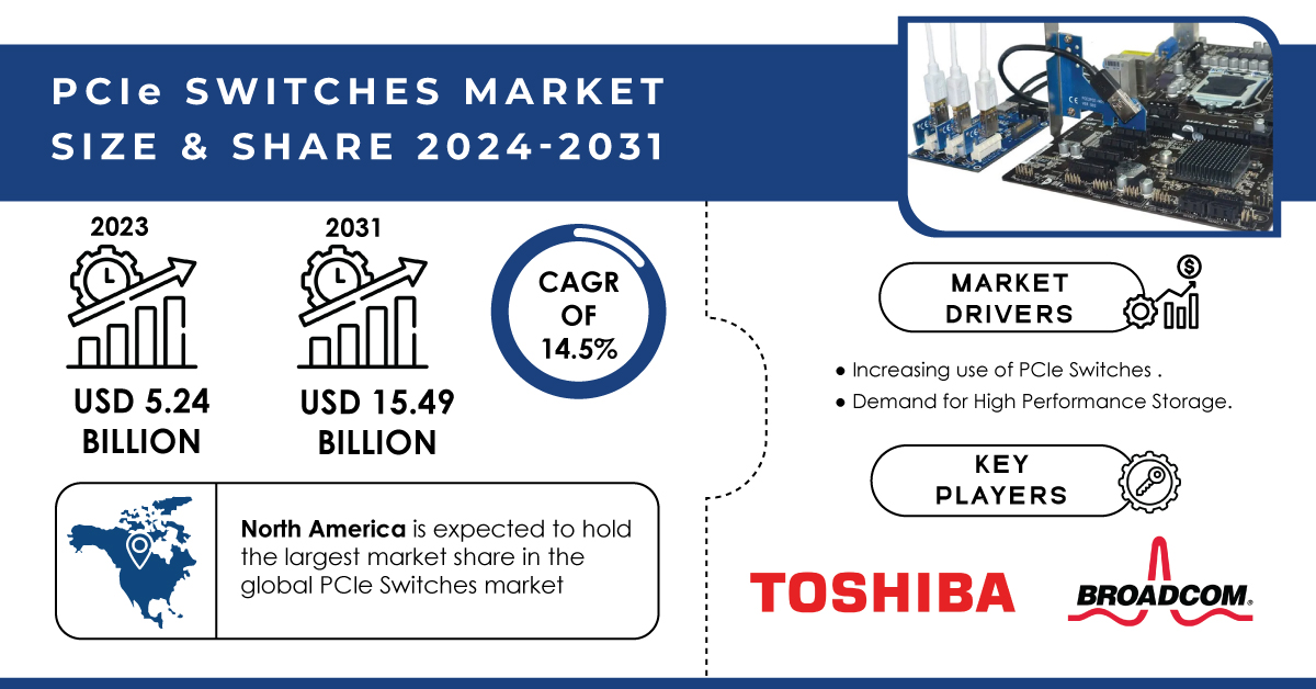 PCIe Switches Market Poised to Reach USD 15.49 Billion by 2031 Due to Demand for High-Performance Storage Solutions