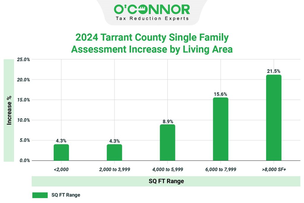 O'Connor was able to compose an analysis of the modest growth in 2024 appraisal values for residential properties owned by Tarrant County residents.