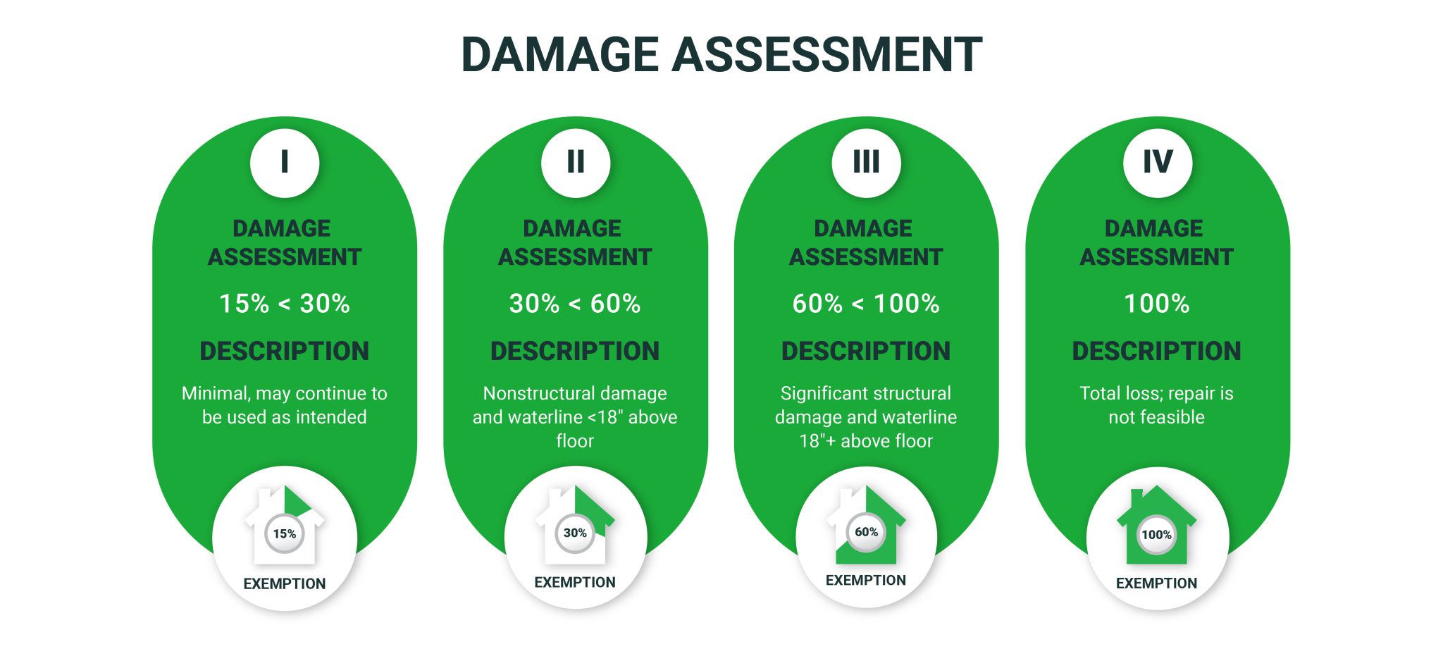 Because the Damage Assessment is between 30% and 60%, the Exemption Percentage = 30%.