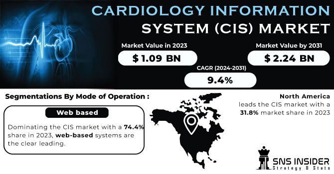 AUSTIN, TEXAS, UNITED STATES, June 5, 2024 /EINPresswire.com/ -- The Cardiology Information System (CIS) Market Size, Valued USD 1.09 billion in 2023 and expected to reach nearly USD 2.24 billion by 2031, at CAGR 9.4% during the forecast period 2024-2031.Cardiovascular Information Systems Market: A Solution For Efficient Cardiac Care Management