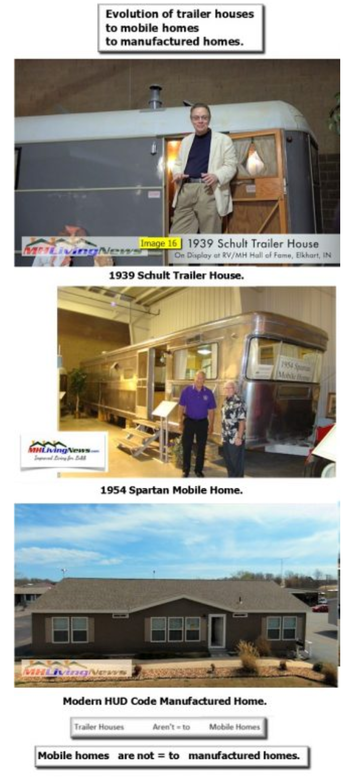 The Evolution of Factory-Built Housing. From trailer houses in 1930s, to Mobile Homes (1950s-mid-1970s) to Manufactured Housing and modern Manufactured Homes.