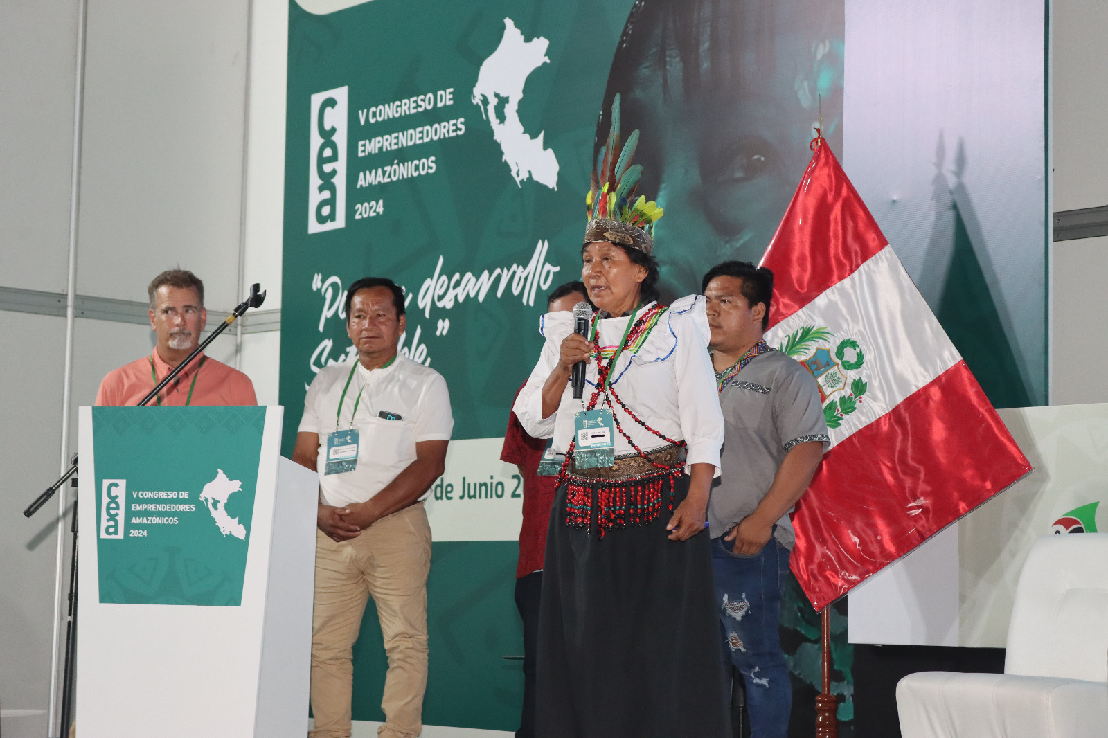 Moments before ending Michael Spoor's presentation, the leaders from three indigenous communities took the stage: Amelia Pacaya (Kokama - Curimaná Ecological Unit), Wilson Barbarán (Santa Clara de Uchunya), Bruno Tangoa and Marcelino Ramírez (Shambo Porvenir), who, amid the applause from the public, confirmed the substantial improvement in the standard of living of their communities as a result of Ocho Sur’s social responsibility programs with all its neighbors.
