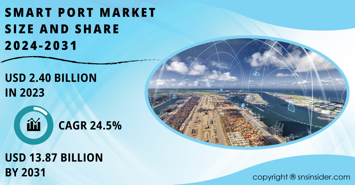 AUSTIN, TEXAS, UNITED STATES, June 14, 2024 /EINPresswire.com/ -- Market Scope and OverviewThe Smart Port Market was valued at USD 2.40 Billion in 2023, with an estimated CAGR of 24.5% to reach USD 13.87 Billion by 2031 as per the SNS Insider report. The increasing need to manage operating costs, collect information in real-time, and make data-driven decisions in port operations are all driving the collective adoption of smart technologies by port authorities Artificial Intelligence (AI)., Internet of Things (IoT), blockchain, process automation, and many more Application technologies It turns out that these technologies can be used separately or in combination to transform traditional systems into digital ones. Smart ports offer many advantages over traditional ports such as reduced interpersonal hassle, lower operating costs, intelligent decision-making, and more predictable performance All of these benefits provide business increase thereby paving the way for the visionary vision of Port 4.0.
