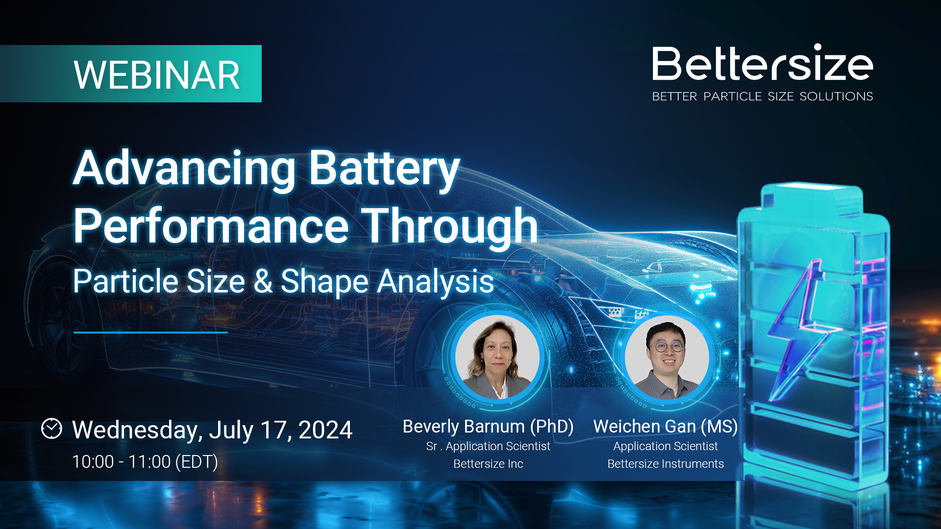 COSTA MESA, CALIFORNIA, UNITED STATES, June 26, 2024 /EINPresswire.com/ -- Bettersize Instruments, a leading manufacturer of particle analysis instrumentation, will host an informative webinar on advancing battery performance. The webinar aims to provide valuable insights into the crucial role of particle size and shape analysis of battery materials and how the combination of laser diffraction and image analysis can better help enhance the lifespan of batteries.