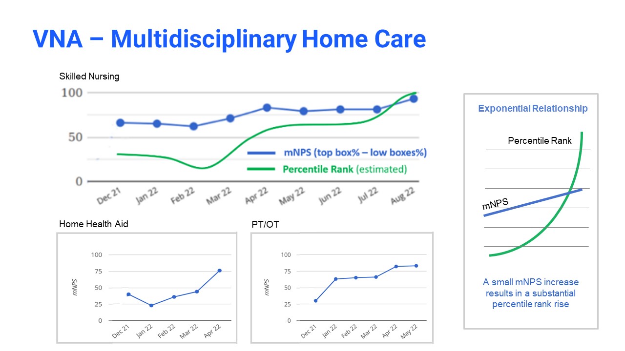 Implementing SmartContact™ led to a significant boost in the HHCAHPS composite score for communication between providers and patients. Moreover, the modified net promoter score (mNPS) showed a positive trend across all staff types, including nurses, social workers, and physical therapists. This metric, which measures the difference between satisfied patients and those with less favorable experiences, underscores the tangible impact of SmartContact™ on patient satisfaction and healthcare provider performance.