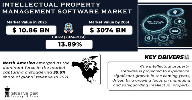 AUSTIN, TEXAS, UNITED STATES, June 18, 2024 /EINPresswire.com/ -- The Intellectual Property Management Software Market Size was valued at USD 10.86 Billion in 2023 and is expected to reach USD 3074 Billion in 2031 with a growing CAGR of 13.89% from 2024 to 2031.The Intellectual Property (IP) Management Software Market has witnessed significant growth as organizations increasingly recognize the value of effectively managing their intellectual property assets. This market encompasses a variety of software solutions designed to streamline the administration of patents, trademarks, copyrights, and trade secrets. These tools facilitate the automation of complex processes such as IP portfolio management, licensing, litigation management, and compliance with global IP regulations. The rise in digital innovation, coupled with the growing need for businesses to protect and leverage their intellectual assets in a competitive landscape, drives the demand for robust IP management software solutions. Major players in this market continually enhance their offerings with advanced features like AI-driven analytics, blockchain for secure record-keeping, and seamless integration with enterprise resource planning (ERP) systems.