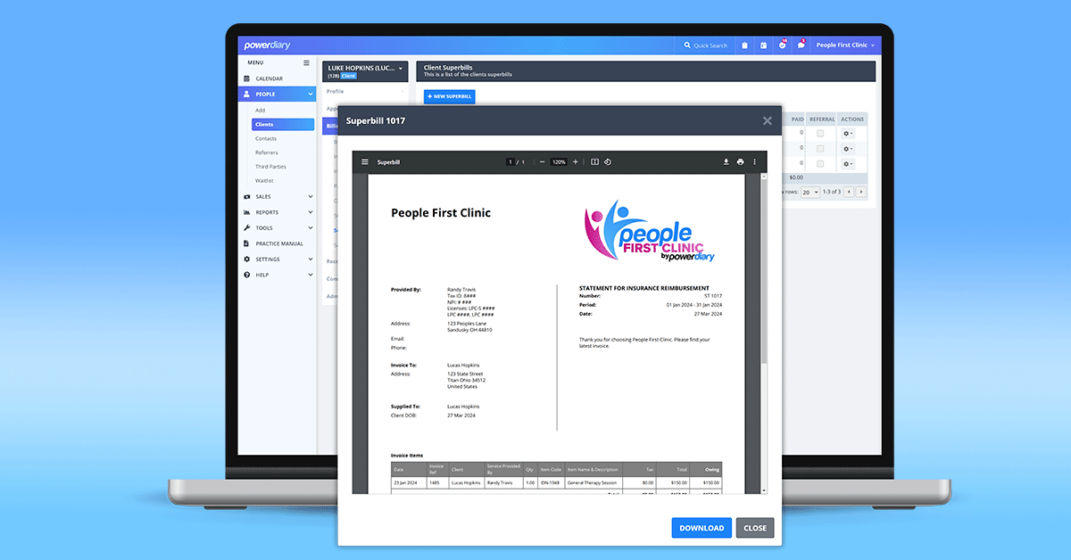 Power Diary has also introduced automated Superbill management. This time-saving feature allows practices to automatically generate and send detailed Superbills to clients, customized based on individual client settings and requirements. This automation ensures that billing is accurate, timely and gives practitioners more time to spend with clients.