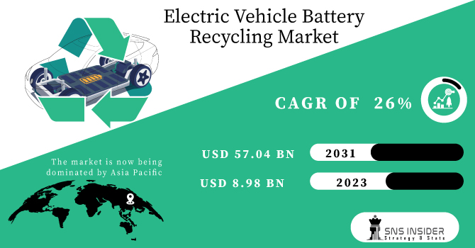 AUSTIN, TEXAS, UNITED STATES, June 19, 2024 /EINPresswire.com/ -- The Electric Vehicle Battery Recycling Market size was valued at USD 8.98 billion in 2023 and is expected to reach USD 57.04 billion by 2031 and grow at a CAGR of 26% over the forecast period (2024-2031).Market Drivers