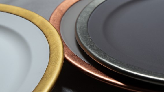 Generally, the most common damage to plates is chipping of the edges. SUZUHAKU was born out of the desire to cover the edge with metal (tin) to make it stronger and to ensure that it can be used with care for many years to come. By establishing a new technique of combining ceramics and metal (tin), we aim to expand the range and possibilities of products that have never been seen before.