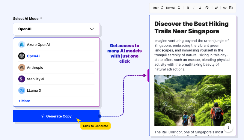 The AI Playground is designed to let companies produce personalised marketing content by using the power of multiple LLMs and Gen AI techniques. It makes the process faster, easier, and much more productive for enterprise users. By integrating Gen AI with analytical AI using multiple language models, businesses can generate high-quality, ready-to-publish articles in under five minutes. This saves time and effort, which is a huge advantage for marketing teams trying to generate full funnel content for multiple markets: