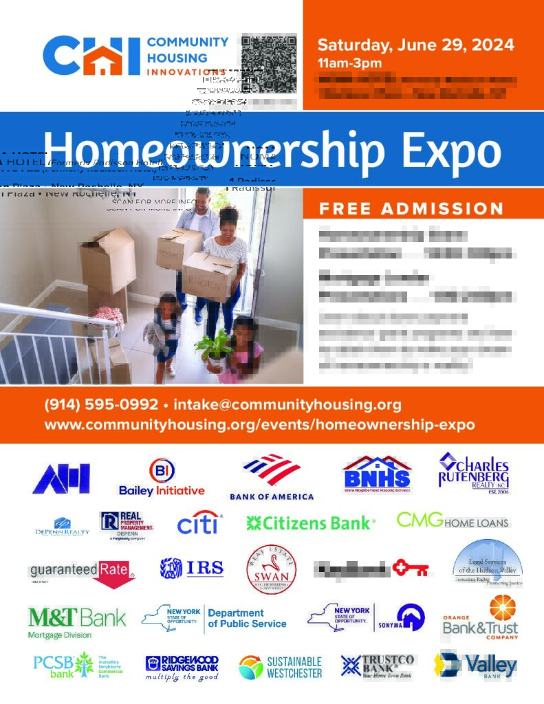 WHITE PLAINS, NEW YORK , UNITED STATES , June 21, 2024 /EINPresswire.com/ -- Community Housing Innovations is hosting a Homeownership Expo on Saturday, June 29, 2024, from 11:00 am – 3:00 pm at the Hotel NoMa located at 1 Radisson Plaza in New Rochelle, NY. In recognition of June being National Homeownership Month, this year’s Homeownership Expo will empower attendees to take the next step in their homeownership journey and provide them with the tools needed to be successful.