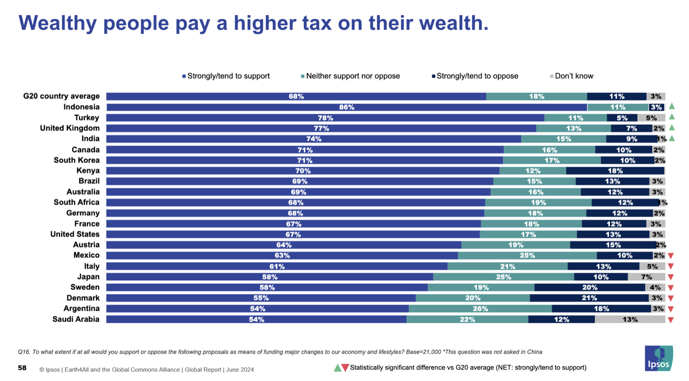 As G20 finance ministers prepare to consider a wealth tax, a large majority of citizens support higher tax on income, corporations, carbon emissions