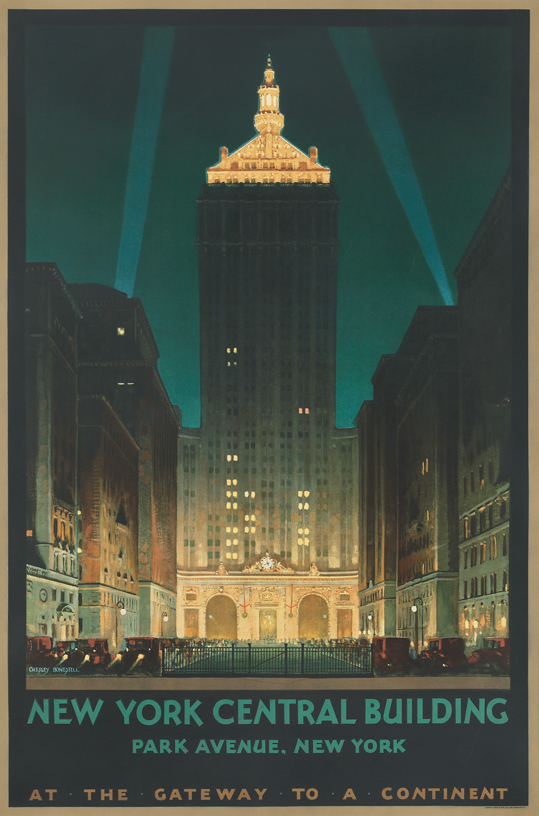 Of course, plenty of Art Deco posters will be offered as well, and this auction boasts a fabulous selection. Highlights include Chesley Bonestell’s 1930 New York Central Building (est. $6,000-$8,000), Roger Broders’ 1930 Chamonix Mt. Blanc / Sports d’Hiver (est. $7,000-$9,000), Emil Cardinaux’s 1920 Palace Hotel / St. Moritz (est. $12,000-$15,000), Jean Carlu’s 1926 Aquarium de Monaco (est. $8,000-$10,000), A. M. Cassandre’s 1936 Simca (est. $12,000-$15,000), Edward M. Eggleston’s ca. 1935 Pennsylvania Railroad / Atlantic City (est. $4,000-$5,000), Charles Loupot’s 1928 O Cap / Pour les Cheveux (est. $8,000-$10,000), Leslie Ragan’s 1938 The New 20th Century Limited (est. $6,000-$8,000), and V. Tschetschets’ 1913 Russian Olympics in Kiev (est. $5,000-$6,000).