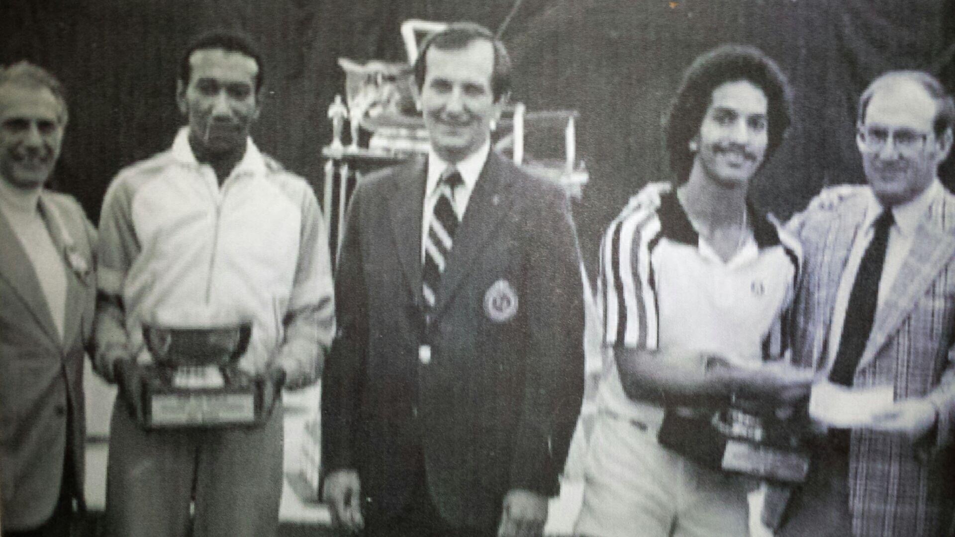 Maurice Hunter, who once held No. 1 men’s singles title for the Southeastern Michigan Tennis Association (SEMTA) for 2 years straight and the first in the District to hold a world computer ranking in pro tennis, started his move up the ranks with victories defeating Rudy Hernando 6-4, 7-5 winning the Sullair Men’s Invitational at Michigan City, Indiana then after qualifying for the main draw, he knocked off 4th seed Chris Bussert 7-6, 7-5 for the top prize in the finals of the USTA Grand Prix circuit tournament in Chicago.