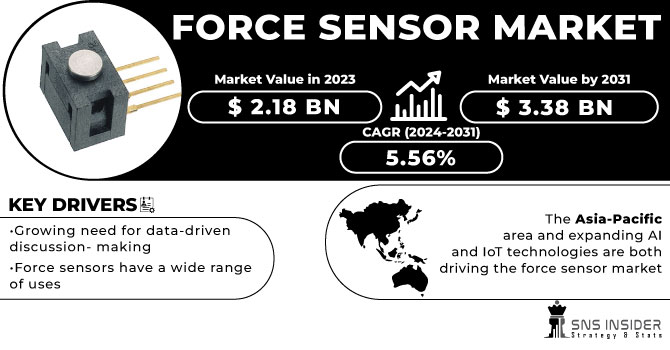 AUSTIN, TEXAS, UNITED STATES, June 25, 2024 /EINPresswire.com/ -- Force Sensor Market Size & Growth Prospect:The Force Sensor Market is poised for significant growth with projected market size USD 3.38 billion by 2031. This reflecting a CAGR of 5.56% % from 2024 to 2031, building upon a 2023 market value of USD 2.18 billion, according to the SNS Insider report.