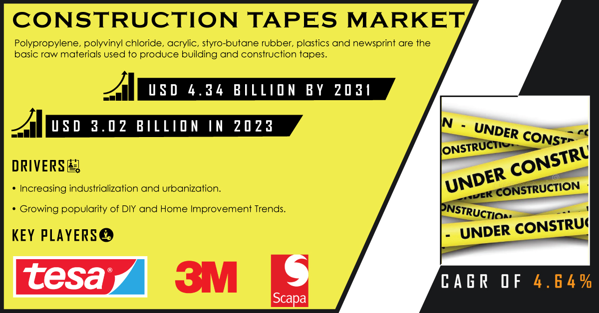 Construction Tapes Market Trends, Growth, and Forecast Future Scope Report to Reach USD 4.34 billion by 2031