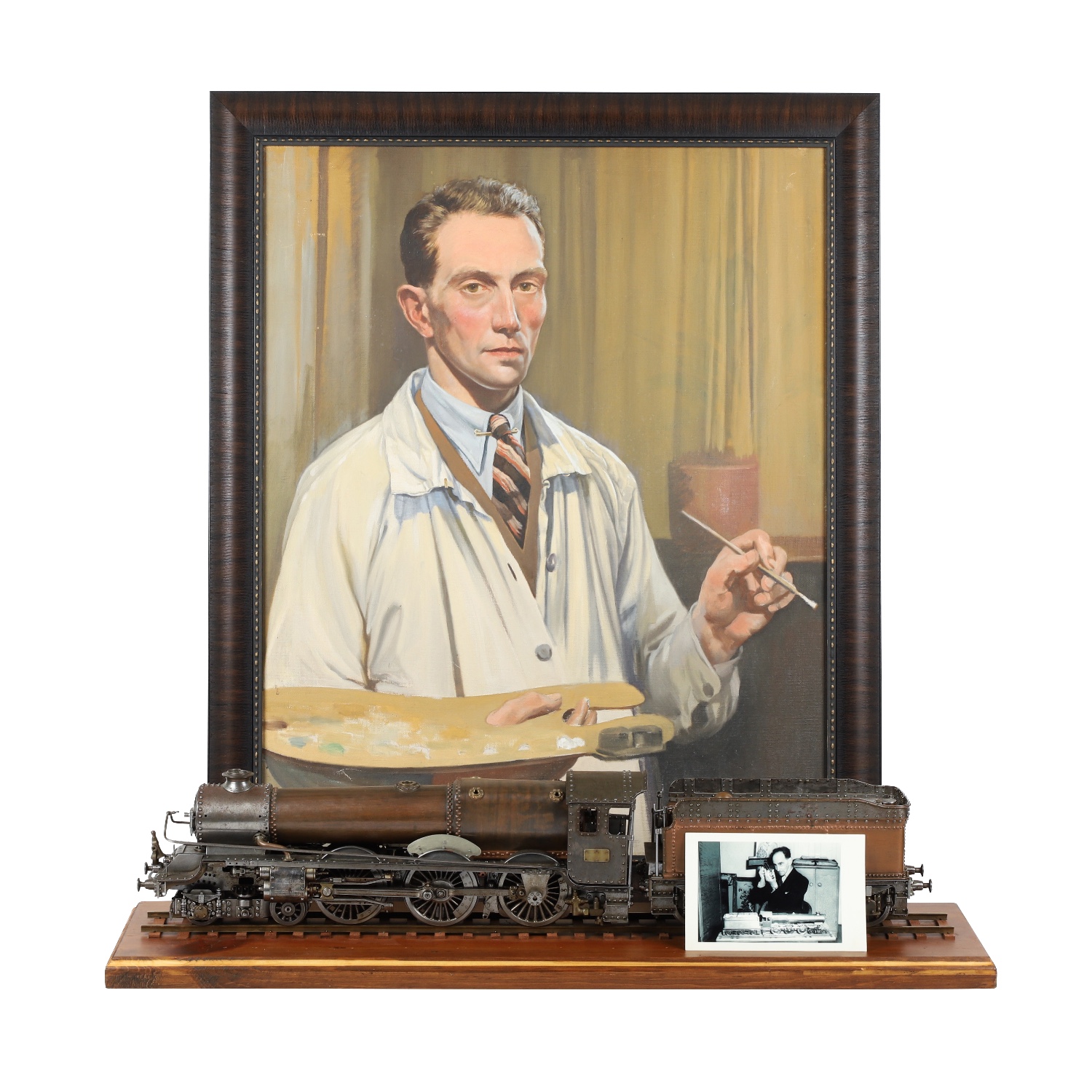 A King George V working model steam locomotive fashioned out of metal and wood was an impressive creation built in the 1920s by William Edward Burgess of England. Burgess was an artist and a painter (his self-portrait was included in the lot) who took up model building after he lost his hearing in World War I. This spectacular piece of railroad history gaveled for $8,260.